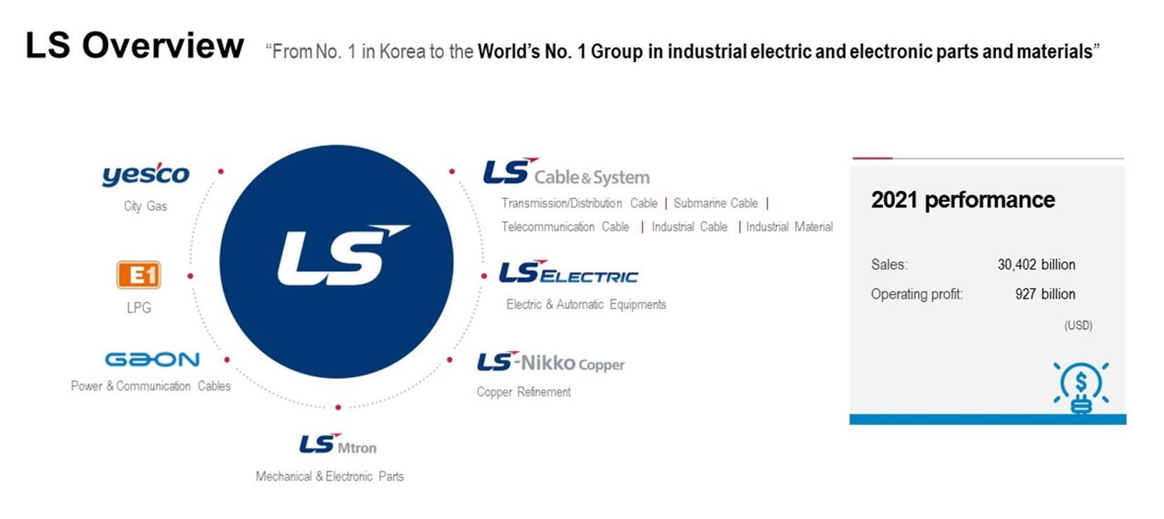 LS spun off from LG in 2003 as a group specializing in electronics, electrical systems, energy and materials.