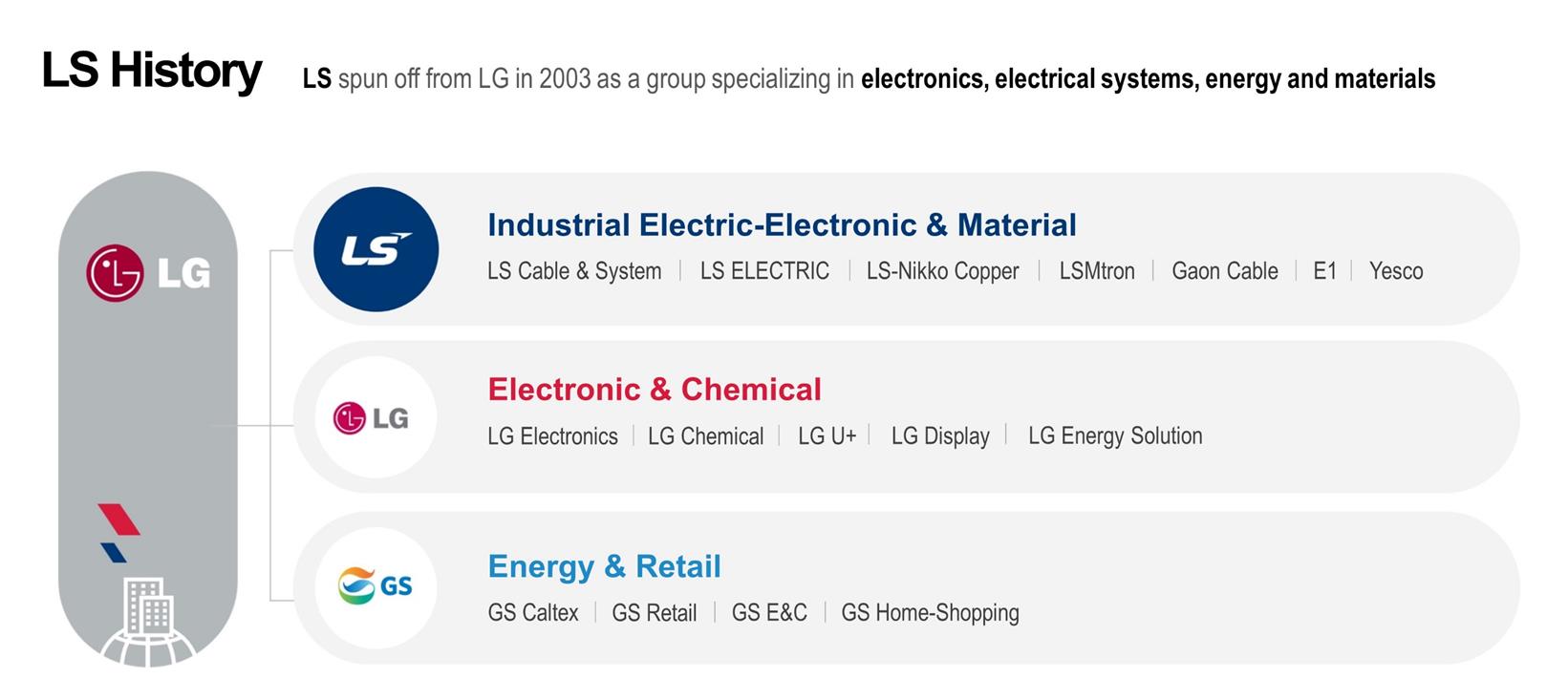 LS spun off from LG in 2003 as a group specializing in electronics, electrical systems, energy and materials.